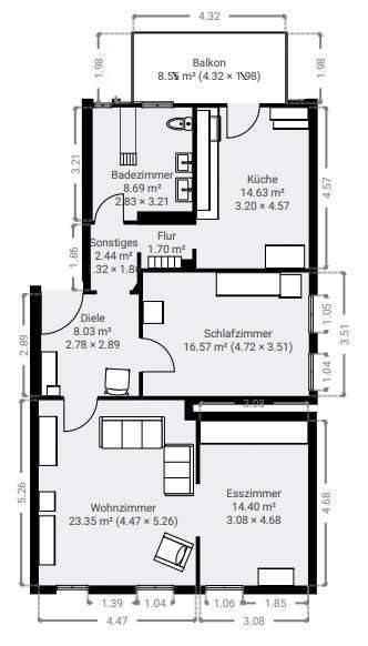 Die großzügige 3-Zimmer-Etagenwohnung befindet sich im