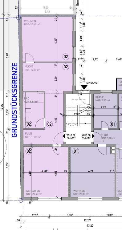 Die Konzeption der Räume entsprechen einem gehobenen Wohnkomfort und einer zeitgemäßen Aufteilung. Das Entrée, die offene Küche mit Essplatz sind zentrales Element der Wohnung. Von ihm gehen Wohn- und Schlafzimmer sowie das Bad ab. Das Schlafzimmer wurde so geplant, dass es durch eine Trennwand noch Möglichkeiten für einen Arbeitsplatz und/ oder einen begehbaren Kleiderschrank gibt.