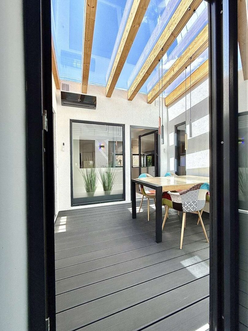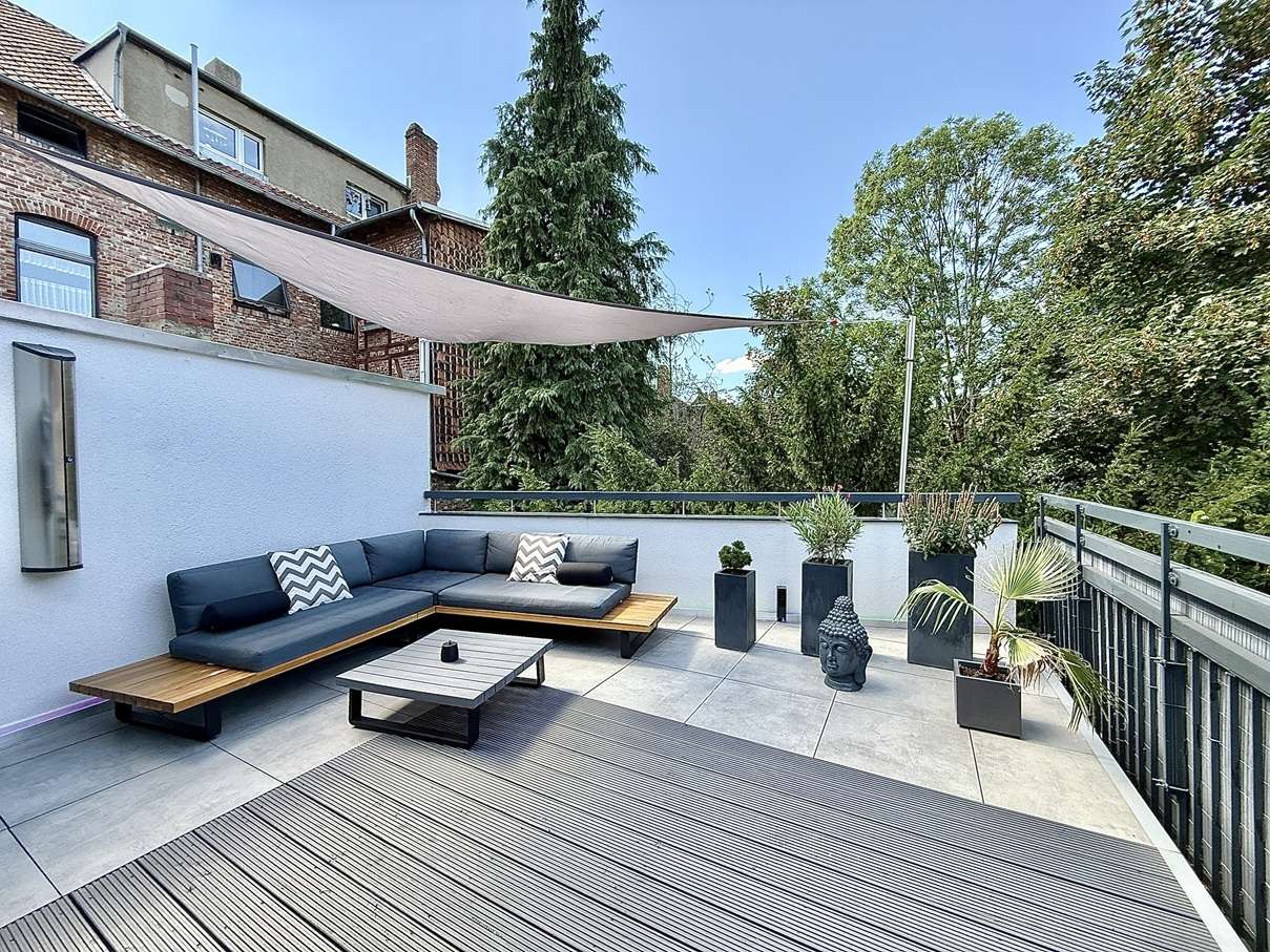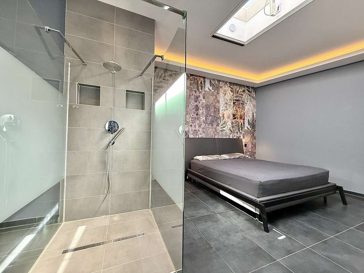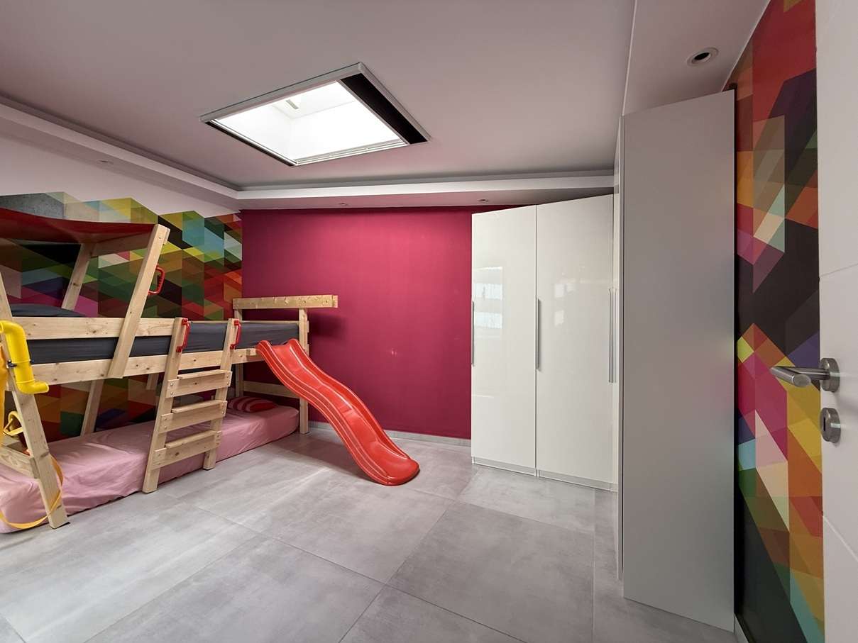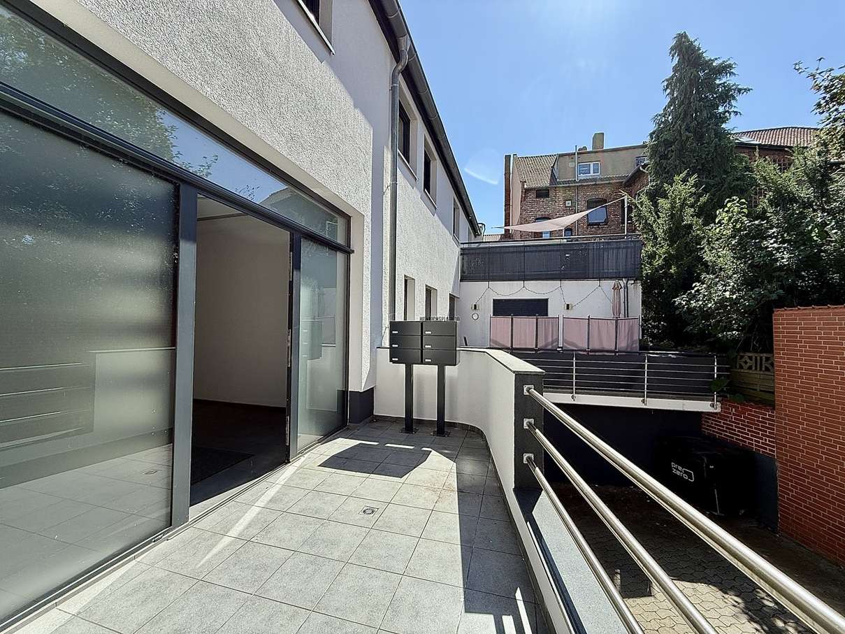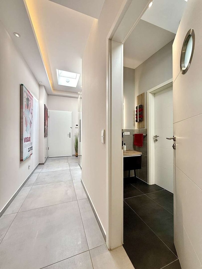 Daran anschließend befinden sich der Wohnbereich mit offener Küche, das Schlafzimmer mit offenem Bad mit Walk-In-Dusche aus Glas und separatem WC sowie ein weiteres Zimmer (aktuell als Kinderzimmer genutzt). Das Raumkonzept ist praktisch und durchdacht. Besonders einfallsreich, das WC kann auch vom Flur erschlossen werden. Eine Terrasse zum Innenhof rundet das großzügige Platzangebot ab.