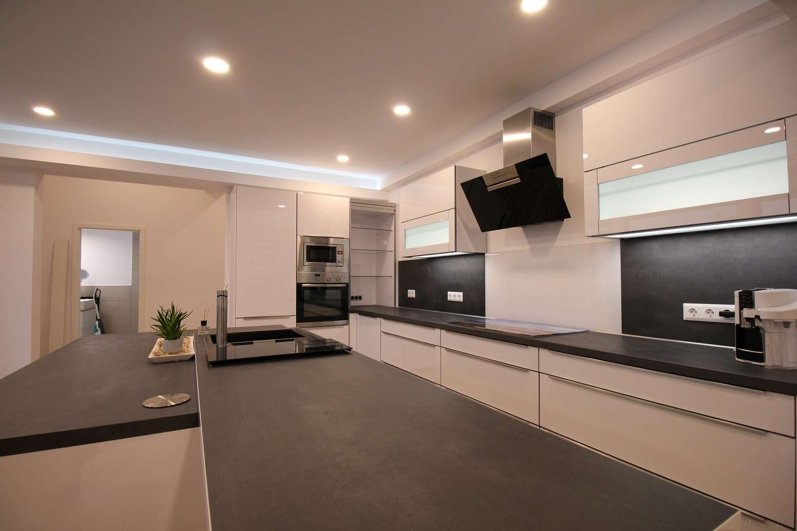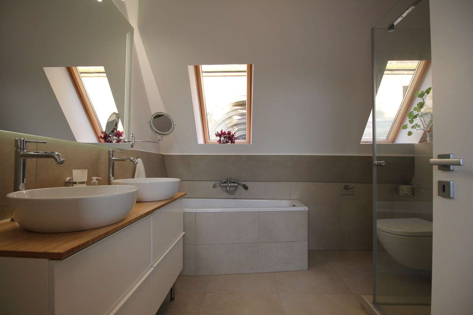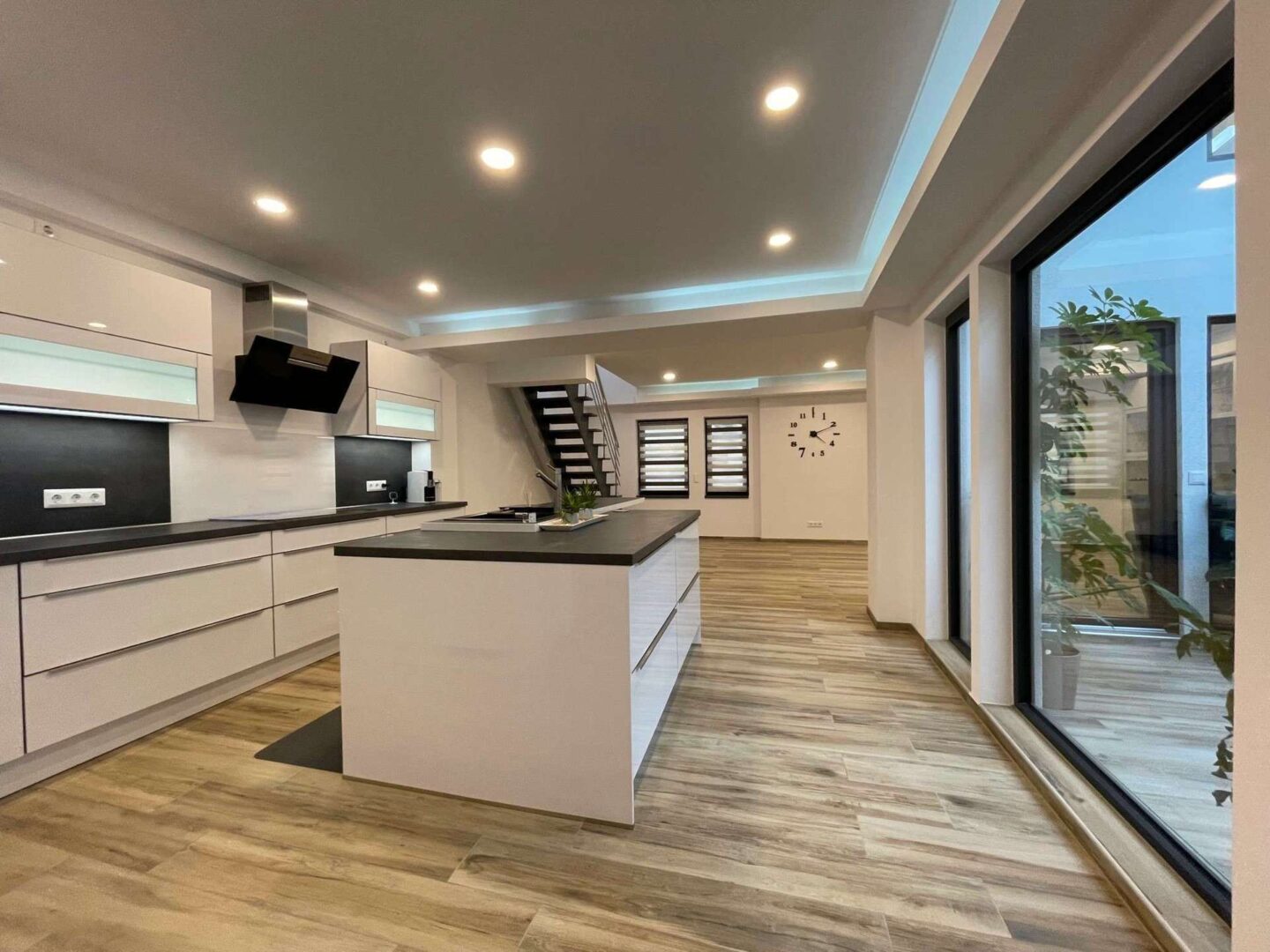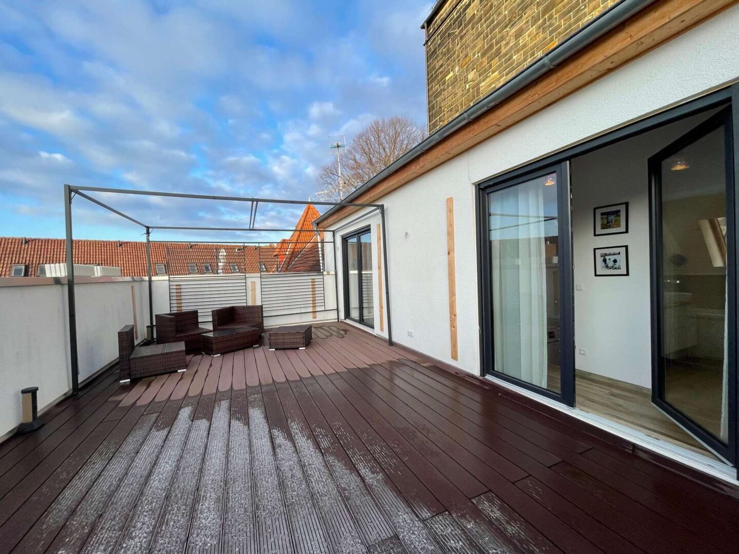 Das Industriegebäude wurde 1970 in massiver Bauweise errichtet und 2018 aufwendig und umfassend nach heutigen energetischen und technischen Anforderungen, modernisiert. Im Ergebnis sind im Gebäude 8 hochmoderne Wohnungen als Eigentümergemeinschaft sowie gemeinschaftliche Bereiche wie Sauna (Infrarotsauna und finnische Sauna), ein Kino, Waschküche und ein Fitnessraum entstanden. Zu den Wohnungen ist jeweils ein Keller und ein Tiefgaragenparkplatz zugeordnet. Weitere Parkplätze stehen, nach Verfügbarkeit, zur Anmietung zur Verfügung. Die zum Verkauf stehende Wohnung bietet auf insgesamt 166 m² Wohnfläche vielseitige Aufteilungs- und Nutzungsmöglichkeiten. Über das Entreé der Wohnung mit angeschlossenem Gäste-WC (mit Dusche) und Büro bzw. Gästezimmer gelangt man in den offen gestalteten Wohn- und Essbereich mit offener Küche. Alleinstellungsmerkmal und Mittelpunkt der Wohnung bildet hierbei ein innenliegender Lichthof, der die umliegenden Bereiche dank bodentiefer Fenster gekonnt verknüpft. Im Dachgeschoss wurden ein Schlafzimmer mit begehbarem Kleiderschrank, ein Kinderzimmer sowie ein Bad mit Dusche und Wanne sowie eine großzügige Dachterrasse arrangiert.