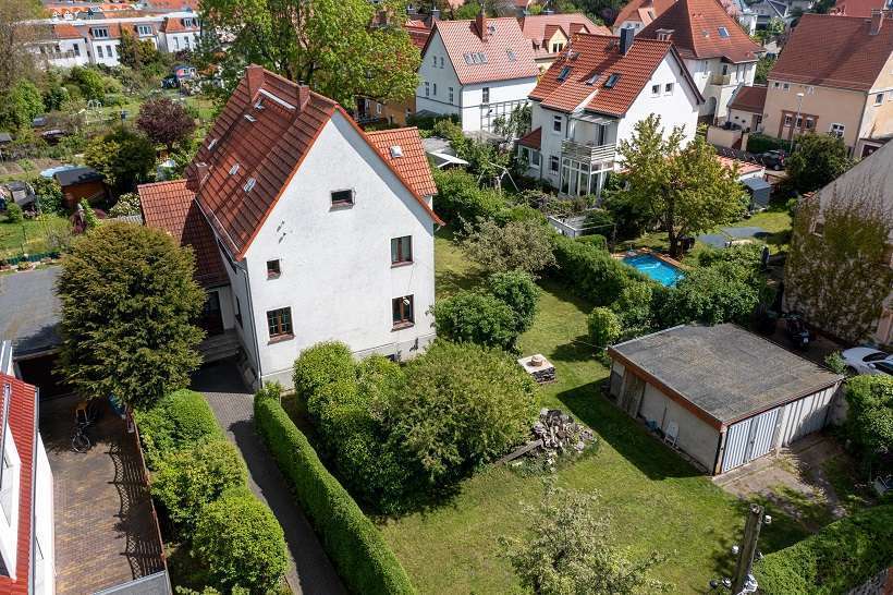 Das herrschaftliche Wohnhaus wurde 1910 in massiver Bauweise errichtet und verfügt über vielfältige Aufteilungs- und Nutzungsmöglichkeiten. Es eignet sich daher besonders für Familien mit Kind(ern) oder als Generationenhaus. Das 2-geschossige und teilunterkellerte Gebäude ist derzeit in zwei Wohneinheiten mit insgesamt 6 Zimmern, 2 Küchen sowie 2 Badezimmern aufgeteilt. Die ca. 66 m² große Einliegerwohnung, die sich auch zur Vermietung eignet, befindet sich im Erdgeschoss links. Daran anschließend, wurde eine geräumige Wohneinheit mit ca. 123 m² arrangiert, die sich über zwei Etagen erstreckt. Das Dachgeschoss bietet eine zusätzliche Ausbaureserve von etwa 70 m². Hier könnte durch den Einbau einer Galerie ein wundervoller Platz zum Verweilen entstehen.