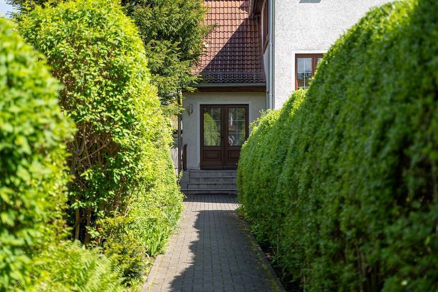 Auf dem traumhaften und einmaligen Grundstück mit gewachsenem Baumbestand bietet sich weiter Platz zur freien Entfaltung. Hier genießen Bewohner, wie auch Besucher eine idyllische Ruhe und Privatsphäre.